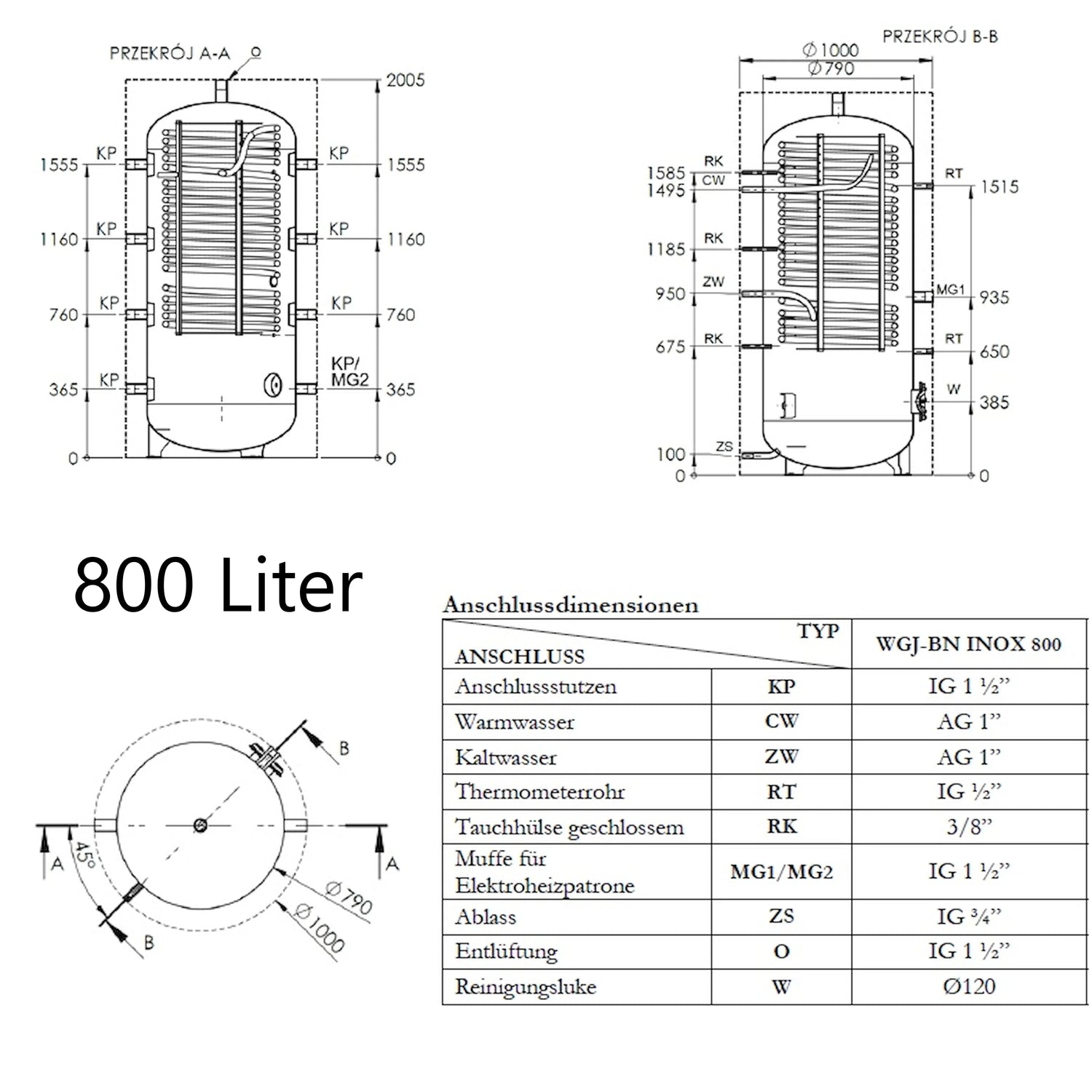 WGJ-BN INOX kombinerer en buffertank til opvarmning af vand med en integreret varmtvandsbeholder. Indeni fungerer et korrugeret rør i rustfrit stål som varmeveksler, hvilket giver en stor kontaktflade for hurtig og effektiv varmeudveksling og muliggør øjeblikkelig vandopvarmning. Tankens maksimale driftstryk er 0,3 MPa.